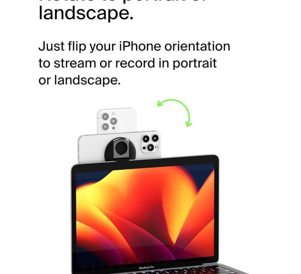 With the magnetic iPhone mount, you can use portrait or landscape for your video calls. Just flip your iPhone to stream or record in either orientation hands-free.